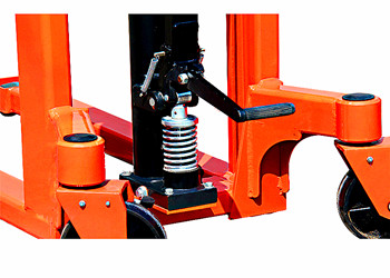 門架采用優(yōu)質(zhì)型鋼焊接而成,剛性好、強(qiáng)度高。后輪使用帶剎車裝置的萬向輪,可自由旋轉(zhuǎn)、轉(zhuǎn)動輕便靈活,前后輪均以滾珠軸承安裝于輪軸上,轉(zhuǎn)動靈活。車輪為尼龍輪,耐磨、耐用,且不易損壞工作地面。手動液壓堆垛車